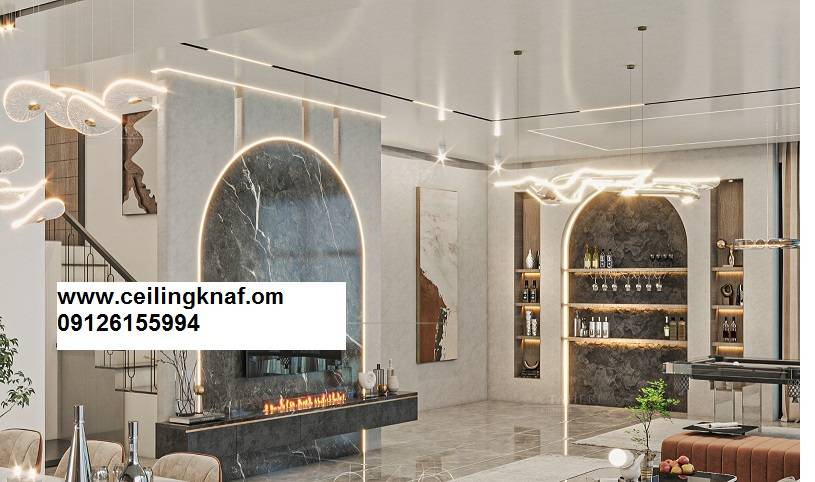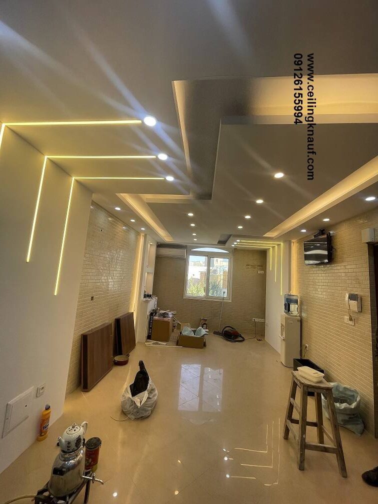 سقف کاذب کناف پذیرایی لاین نوری مدرن2023