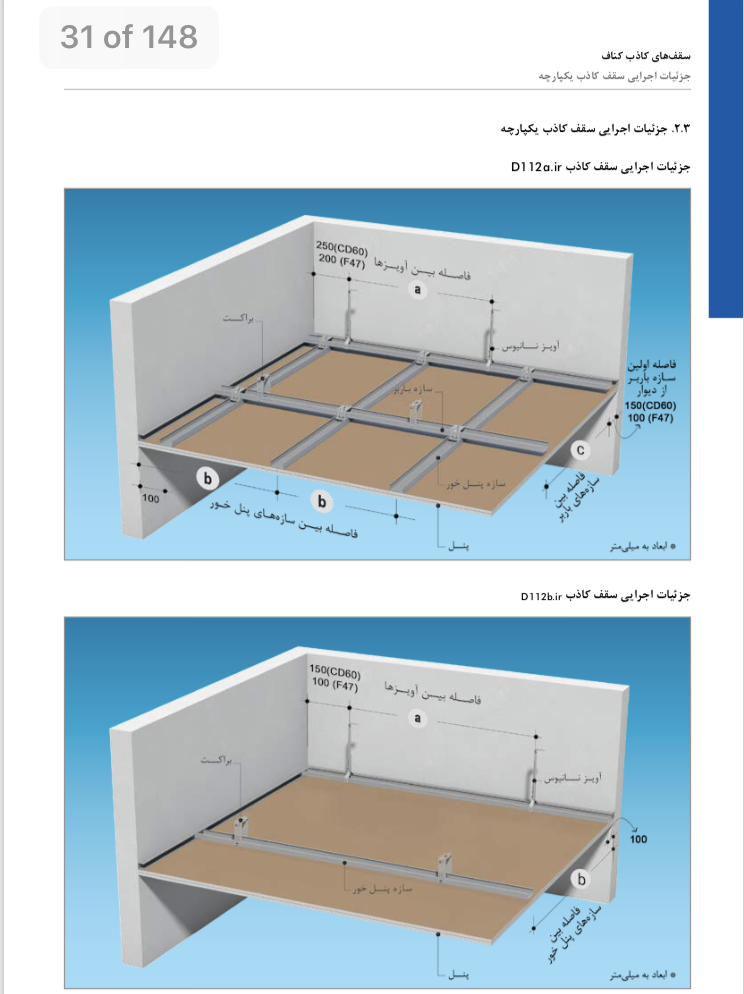 استانداردهای اجرای سقف کناف یکپارچه تیپ A(سازه دوطرفه ):