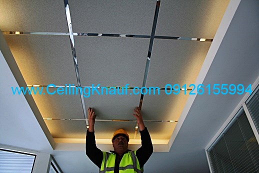 در ابتدا باید کنار دیوار در ارتفاع مشخص شده جهت سقف کاذب نبشیهای آلومینیومی را متصل کنیم و بعد از نصب کردن سیمهای گالوانیزه آویز به سقف و نصب قطعه های سپری آلومینومی قطعه های گچی پیش ساخته را داخل آن قرار بدهید. اندازه های سیمها و سپری برابر با نقشه کارخانه سازنده و همینطور مورد تایید دستگاه نظارتی می باشد. در یک مترمربع حداقل تعداد آویزها 3 عدد می باشد و همچنین نکاتی که در موارد 1،2،3 یاد شده اند باید اجرا بشوند.